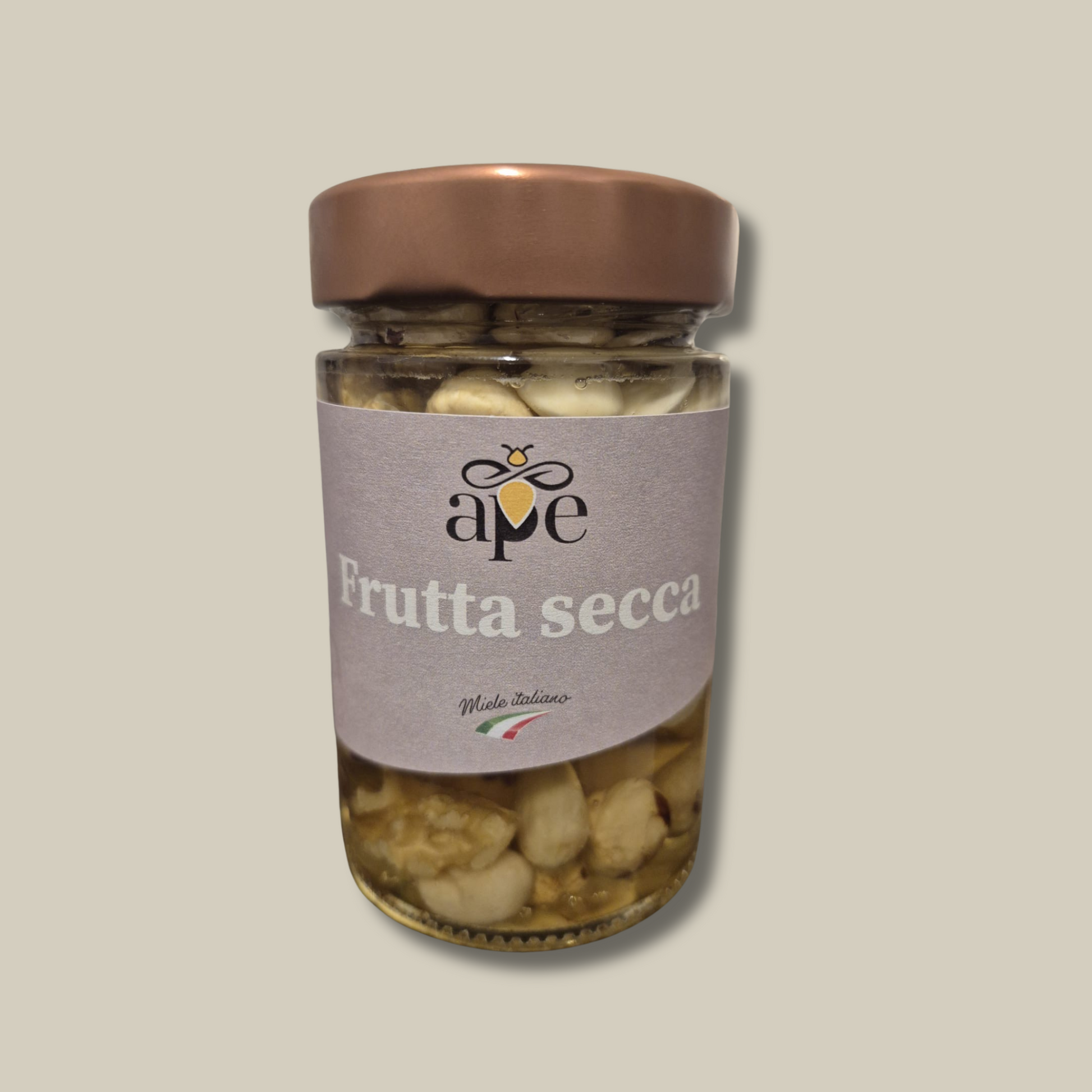 Frutta secca, miele di acacia con mandorle, noci e nocciole